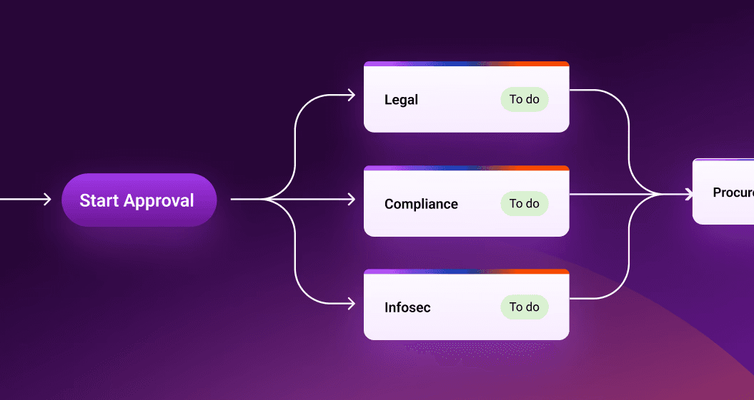 Procurement, Legal, and InfoSec collaborate in one workflow to review responses and finalize approvals.
